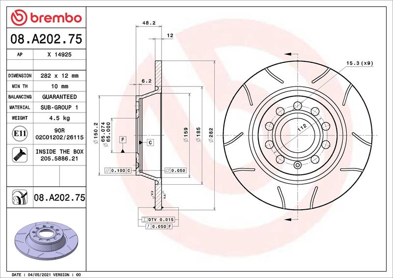 Brzdový kotouč BREMBO Xtra Max - drážkovaný
