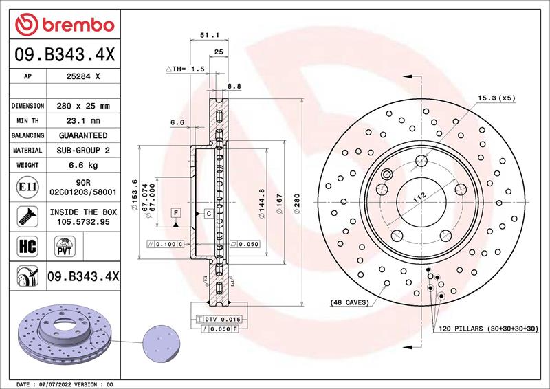 Brzdový kotouč BREMBO Xtra - vrtaný